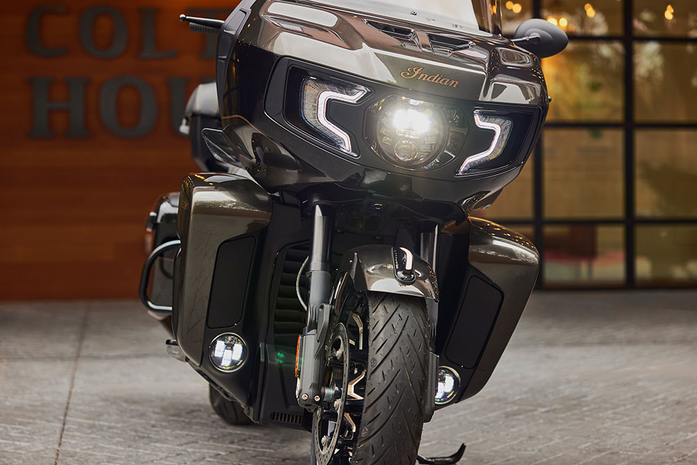 Indian Pursuit Eliteの心臓部には、水冷108キュービックインチPowerPlusエンジンが搭載されています。クラス最高の90kWのパワーと178Nmのトルクは、比類なきパッシングパワーで驚異のVツインツーリング性能を実現します。