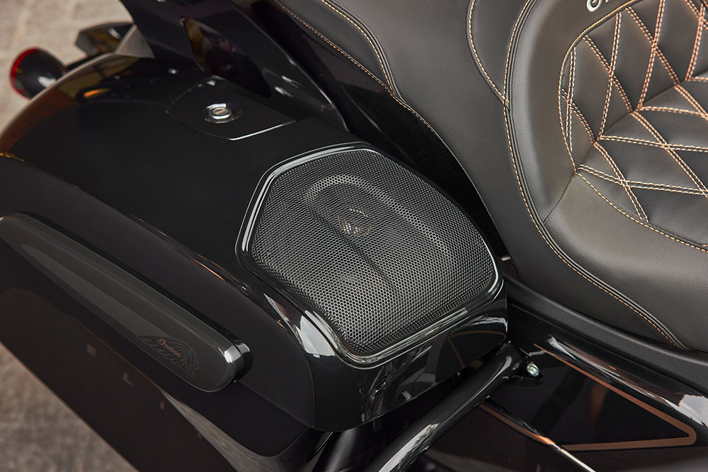 ロードノイズやエンジンノイズを、サウンドシステムでカット。パワーバンドオーディオはRIDE COMMAND®とシームレスに連携し、 アンプ内蔵のフロントフェアリングスピーカーにより、旅のムードを盛り上げる。また、9バンドイコライザーでクリアなサウンドを実現します。