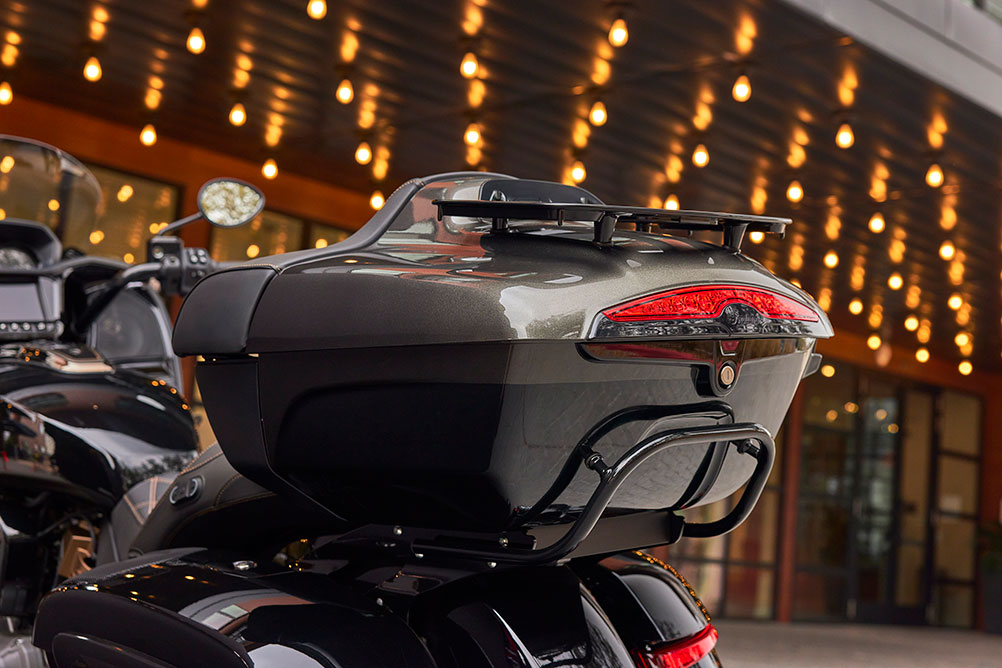 全天候型のサドルバッグやトランクに、荷物を安全に収納できます。コンソールやキーフォブのボタンを押すだけで、荷物は安全に収納されます。